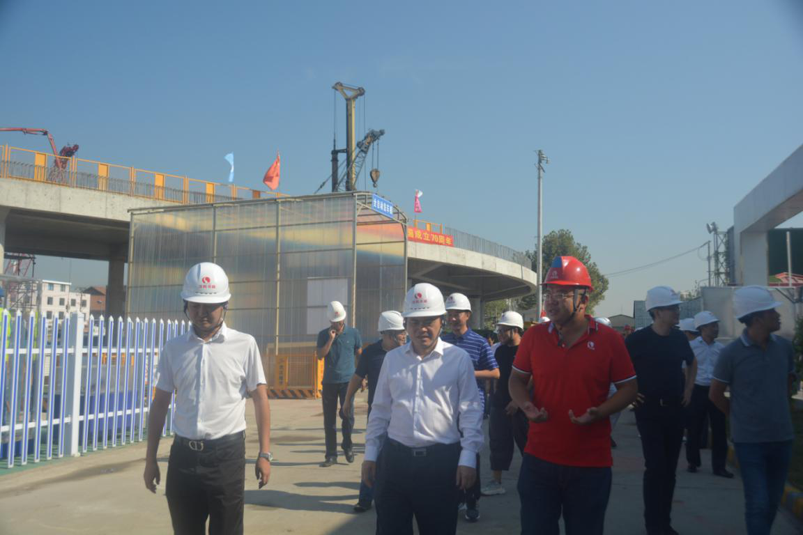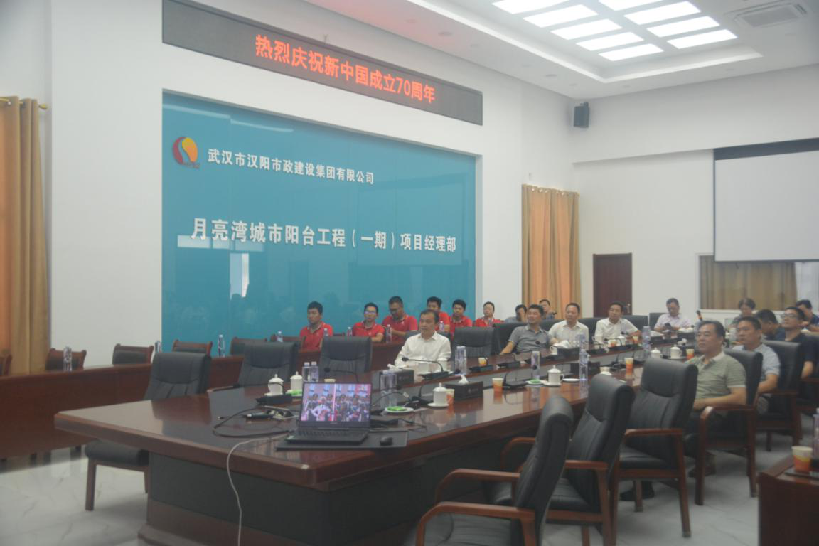嚴悌文一行首先來到月亮灣項目施工現場進行了實地調研,在董事長曹元鑫及項目經理魏偉的介紹下了解了項目的概況、最新進展及遇到的重難點問題。他為建設在一線的工作人員送去了節日祝福,并對他們持續堅守、奮勇拼搏的精神表達了充分的認可和贊揚,希望項目建設人員繼續保持良好的工作勢頭,排除萬難,把月亮灣項目建設成為優質的精品工程。隨后,嚴悌文一行在月亮灣項目部會議室和公司領導及項目部員工一起觀看了盛大而濃重的國慶盛典,一起慶祝祖國70周年華誕。
